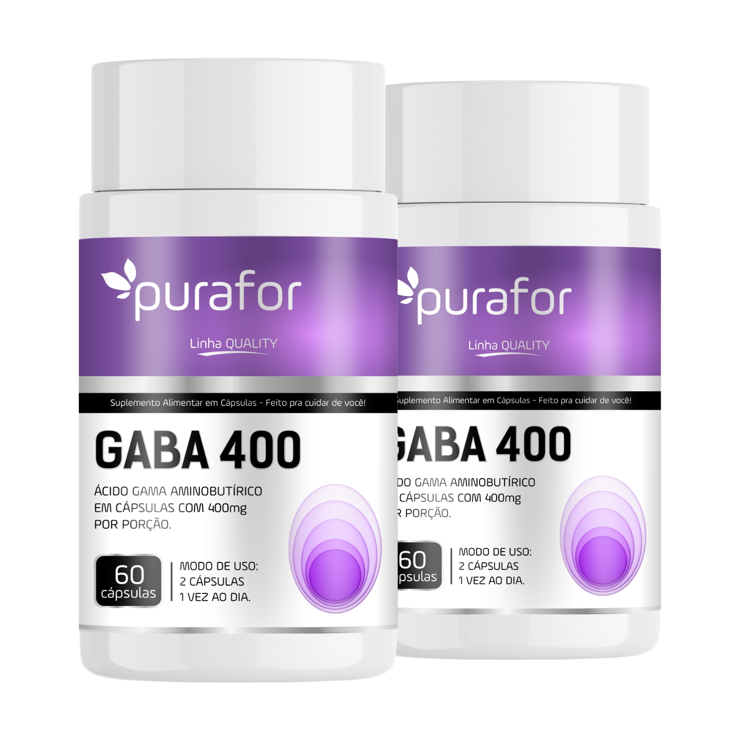 Kit 2 GABA 400mg - Ácido Gama Aminobutírico 60 cápsulas Purafor